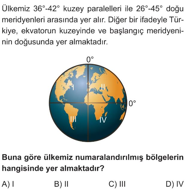 6. Sınıf Ülkemizin, Kıtaların ve Okyanusların Konum Özellikleri Test 3