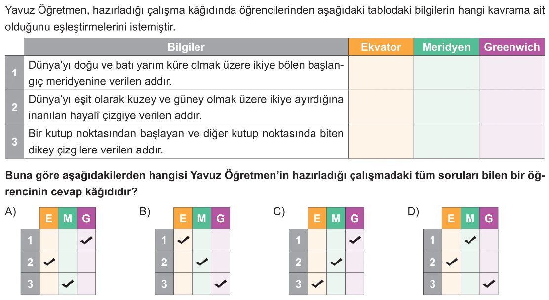 6. Sınıf Ülkemizin, Kıtaların ve Okyanusların Konum Özellikleri Test 3