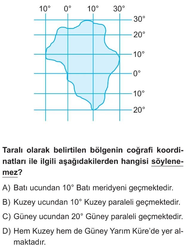 6. Sınıf Ülkemizin, Kıtaların ve Okyanusların Konum Özellikleri Test 3