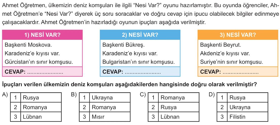 6. Sınıf Ülkemizin, Kıtaların ve Okyanusların Konum Özellikleri Test 5