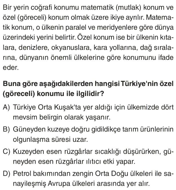 6. Sınıf Ülkemizin, Kıtaların ve Okyanusların Konum Özellikleri Test 5