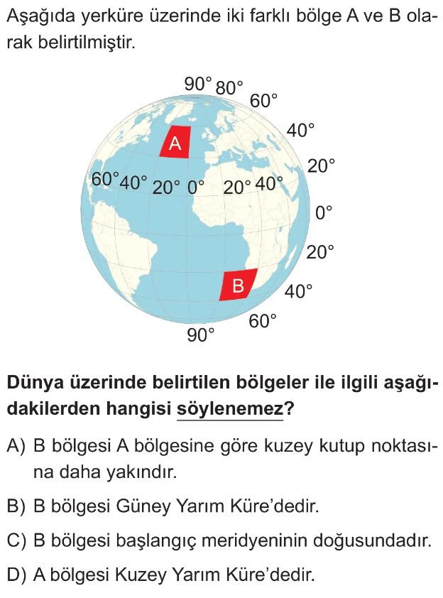6. Sınıf Ülkemizin, Kıtaların ve Okyanusların Konum Özellikleri Test 5