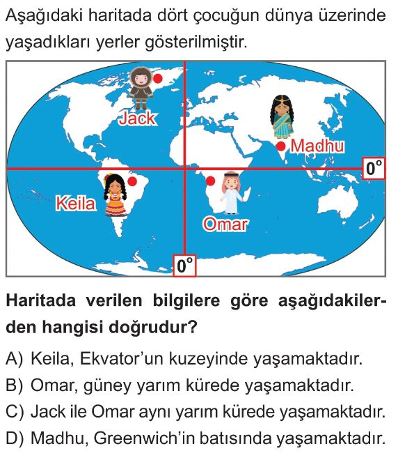 6. Sınıf Ülkemizin, Kıtaların ve Okyanusların Konum Özellikleri Test 5