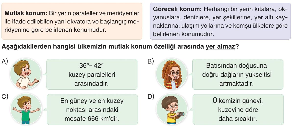 6. Sınıf Ülkemizin, Kıtaların ve Okyanusların Konum Özellikleri Test 6