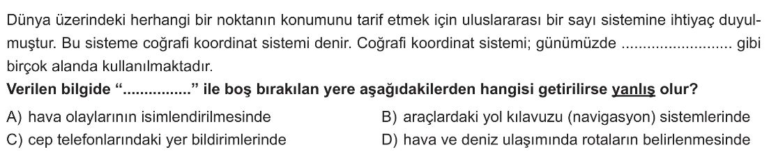 6. Sınıf Ülkemizin, Kıtaların ve Okyanusların Konum Özellikleri Test 6