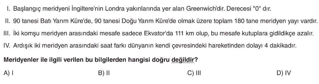 6. Sınıf Ülkemizin, Kıtaların ve Okyanusların Konum Özellikleri Test 6