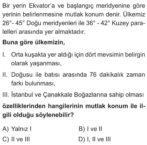 6. Sınıf Ülkemizin, Kıtaların ve Okyanusların Konum Özellikleri Test 7