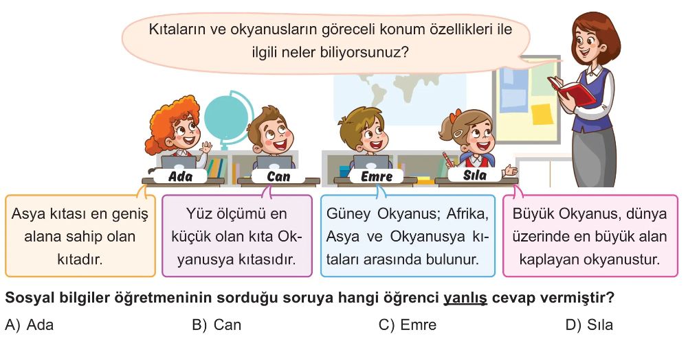 6. Sınıf Ülkemizin, Kıtaların ve Okyanusların Konum Özellikleri Test 7