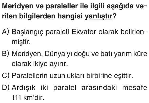 6. Sınıf Ülkemizin, Kıtaların ve Okyanusların Konum Özellikleri Test 7