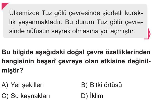 6. Sınıf Doğal ve Beşerî Çevre Özellikleri Arasındaki İlişki Test 3