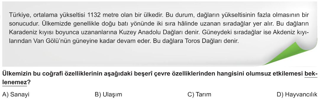 6. Sınıf Doğal ve Beşerî Çevre Özellikleri Arasındaki İlişki Test 6