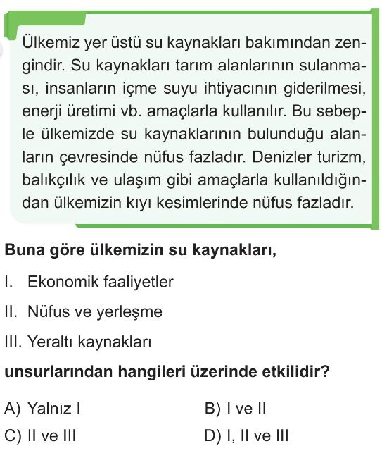 6. Sınıf Doğal ve Beşerî Çevre Özellikleri Arasındaki İlişki Test 6