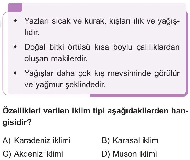 6. Sınıf Doğal ve Beşerî Çevre Özellikleri Arasındaki İlişki Test 7