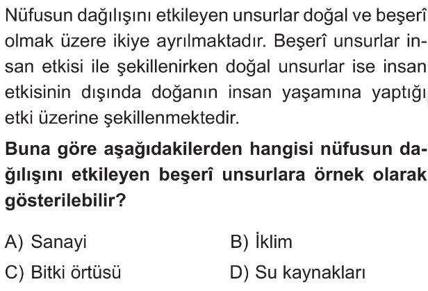 6. Sınıf Doğal ve Beşerî Çevre Özellikleri Arasındaki İlişki Test 7