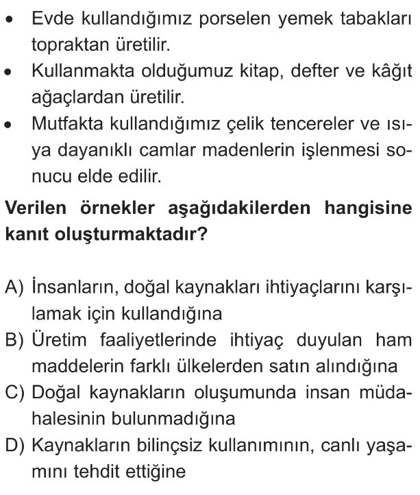 6. Sınıf Doğal ve Beşerî Çevre Özellikleri Arasındaki İlişki Test 7
