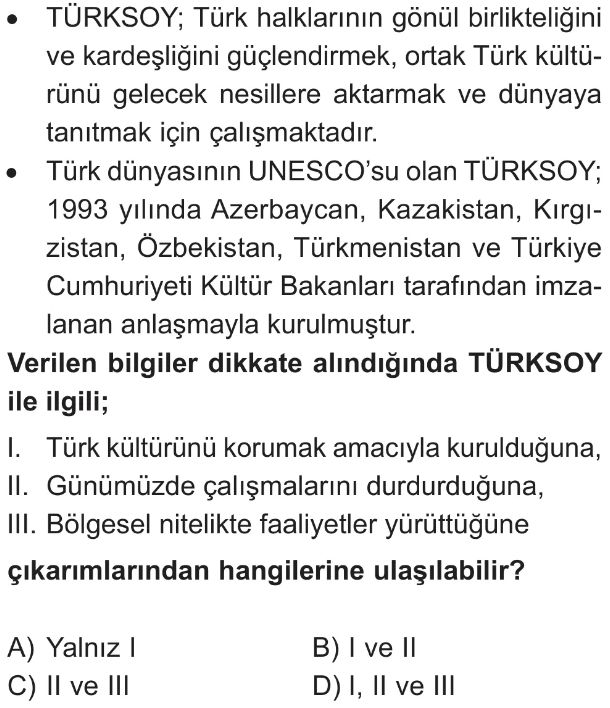 6. Sınıf Ülkemizin Türk Dünyasıyla Kültürel İş Birlikleri Test 1