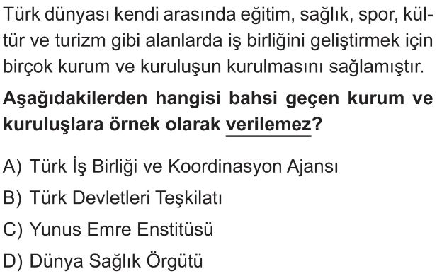 6. Sınıf Ülkemizin Türk Dünyasıyla Kültürel İş Birlikleri Test 1