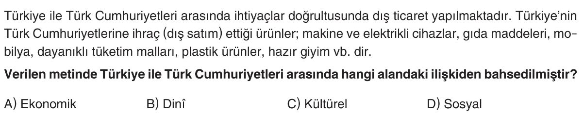 6. Sınıf Ülkemizin Türk Dünyasıyla Kültürel İş Birlikleri Test 1