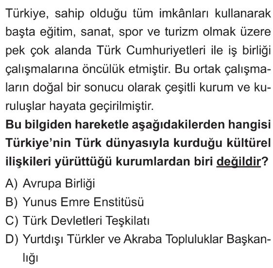 6. Sınıf Ülkemizin Türk Dünyasıyla Kültürel İş Birlikleri Test 2