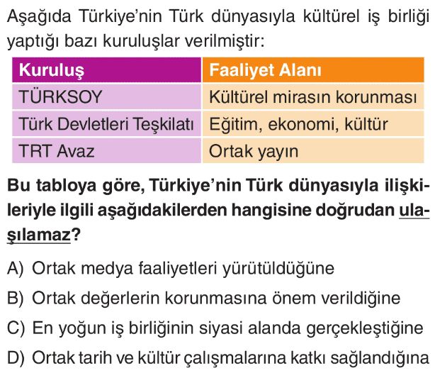6. Sınıf Ülkemizin Türk Dünyasıyla Kültürel İş Birlikleri Test 2