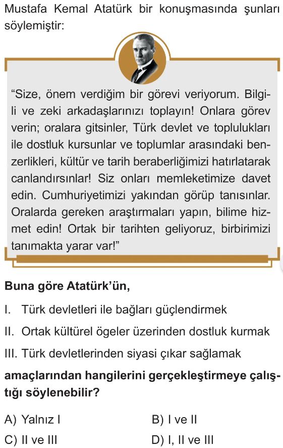 6. Sınıf Ülkemizin Türk Dünyasıyla Kültürel İş Birlikleri Test 2