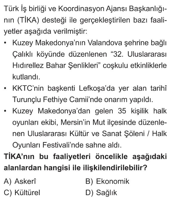 6. Sınıf Ülkemizin Türk Dünyasıyla Kültürel İş Birlikleri Test 3