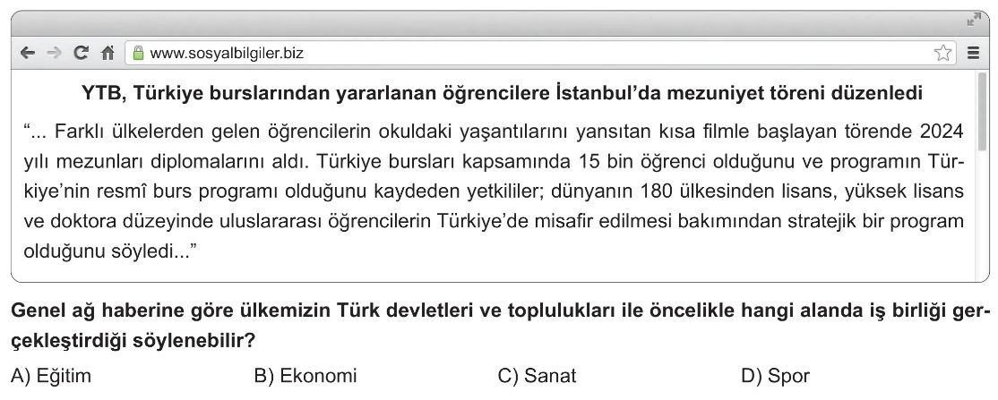 6. Sınıf Ülkemizin Türk Dünyasıyla Kültürel İş Birlikleri Test 3