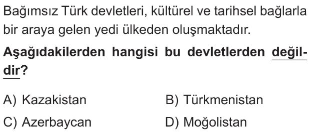 6. Sınıf Ülkemizin Türk Dünyasıyla Kültürel İş Birlikleri Test 3
