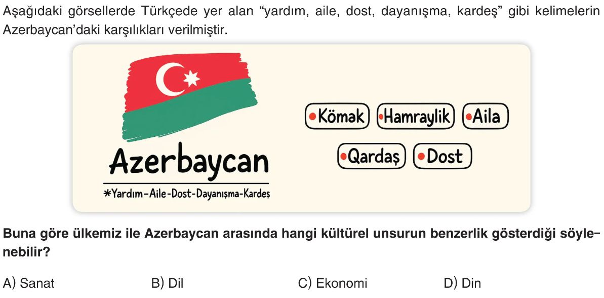 6. Sınıf Ülkemizin Türk Dünyasıyla Kültürel İş Birlikleri Test 3