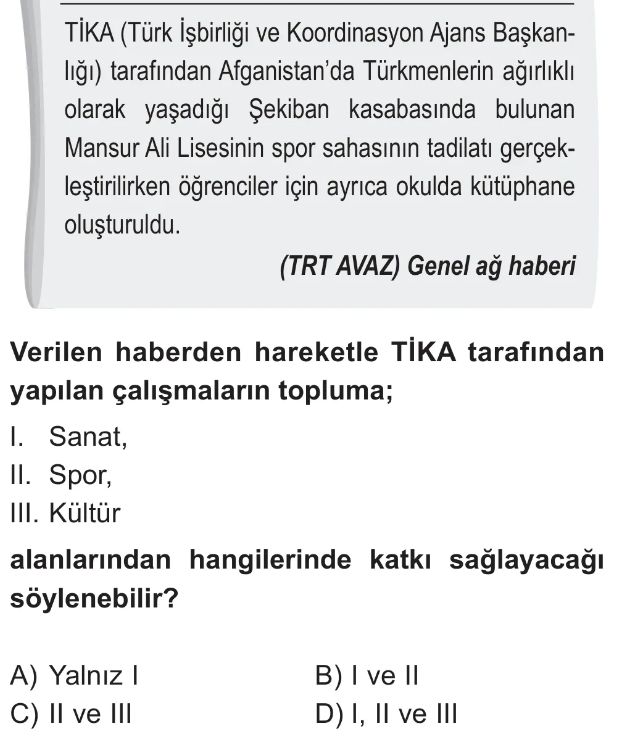 6. Sınıf Ülkemizin Türk Dünyasıyla Kültürel İş Birlikleri Test 3