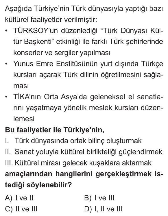 6. Sınıf Ülkemizin Türk Dünyasıyla Kültürel İş Birlikleri Test 4