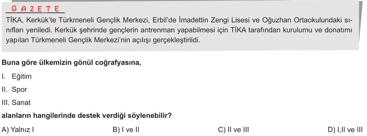 6. Sınıf Ülkemizin Türk Dünyasıyla Kültürel İş Birlikleri Test 4