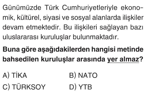 6. Sınıf Ülkemizin Türk Dünyasıyla Kültürel İş Birlikleri Test 4
