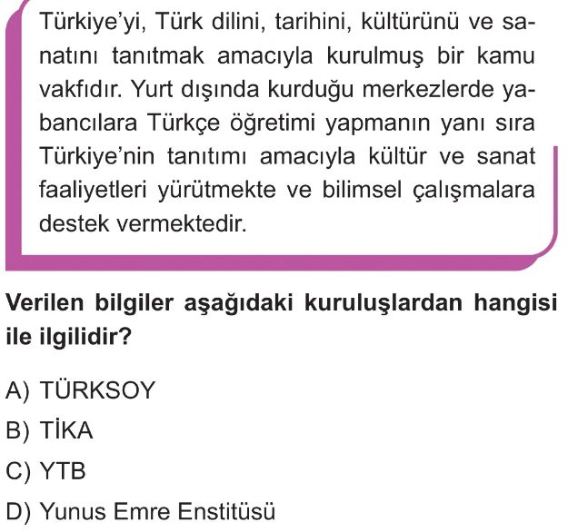 6. Sınıf Ülkemizin Türk Dünyasıyla Kültürel İş Birlikleri Test 4