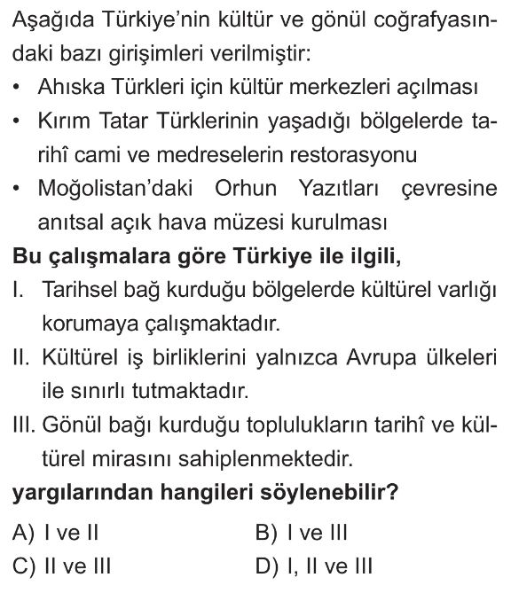 6. Sınıf Ülkemizin Türk Dünyasıyla Kültürel İş Birlikleri Test 5