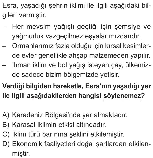 6. Sınıf Evimiz Dünya Öğrenme Alanı Değerlendirme Test 4