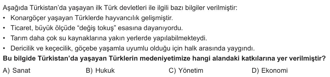 6. Sınıf Türkistan'da Kurulan İlk Türk Devletlerinin Medeniyetimize Katkıları Test 2