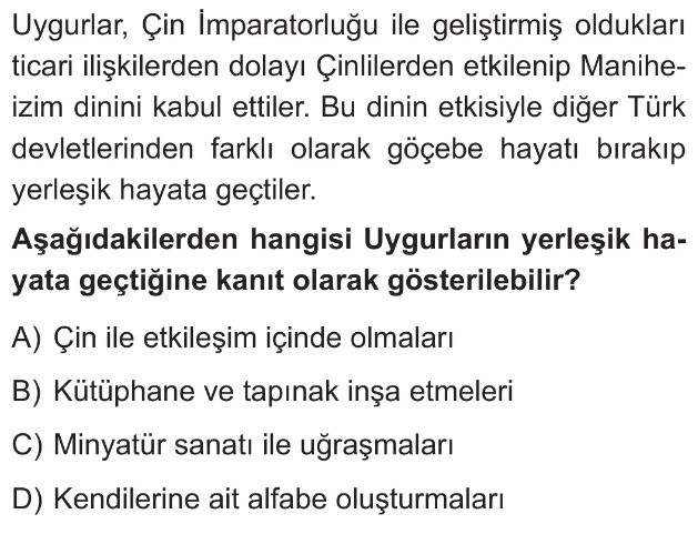 6. Sınıf Türkistan'da Kurulan İlk Türk Devletlerinin Medeniyetimize Katkıları Test 3