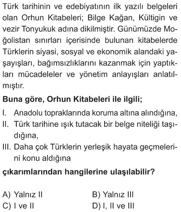 6. Sınıf Türkistan'da Kurulan İlk Türk Devletlerinin Medeniyetimize Katkıları Test 3