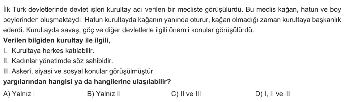 6. Sınıf Türkistan'da Kurulan İlk Türk Devletlerinin Medeniyetimize Katkıları Test 3