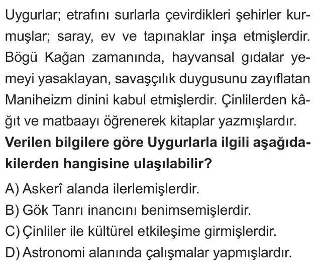 6. Sınıf Türkistan'da Kurulan İlk Türk Devletlerinin Medeniyetimize Katkıları Test 4