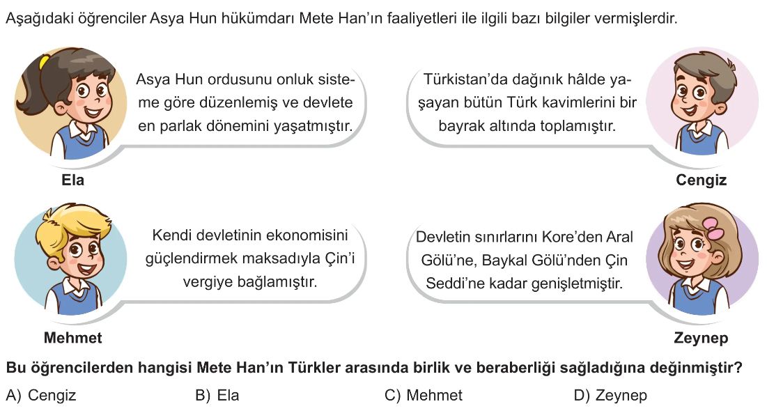 6. Sınıf Türkistan'da Kurulan İlk Türk Devletlerinin Medeniyetimize Katkıları Test 4