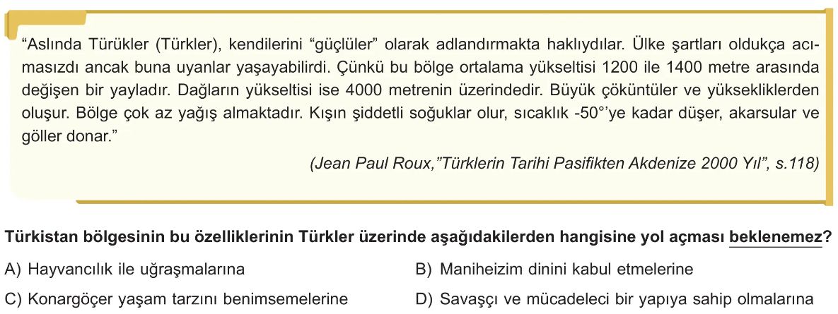 6. Sınıf Türkistan'da Kurulan İlk Türk Devletlerinin Medeniyetimize Katkıları Test 4
