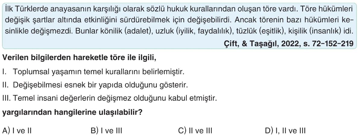 6. Sınıf Türkistan'da Kurulan İlk Türk Devletlerinin Medeniyetimize Katkıları Test 5