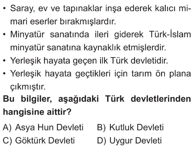 6. Sınıf Türkistan'da Kurulan İlk Türk Devletlerinin Medeniyetimize Katkıları Test 6