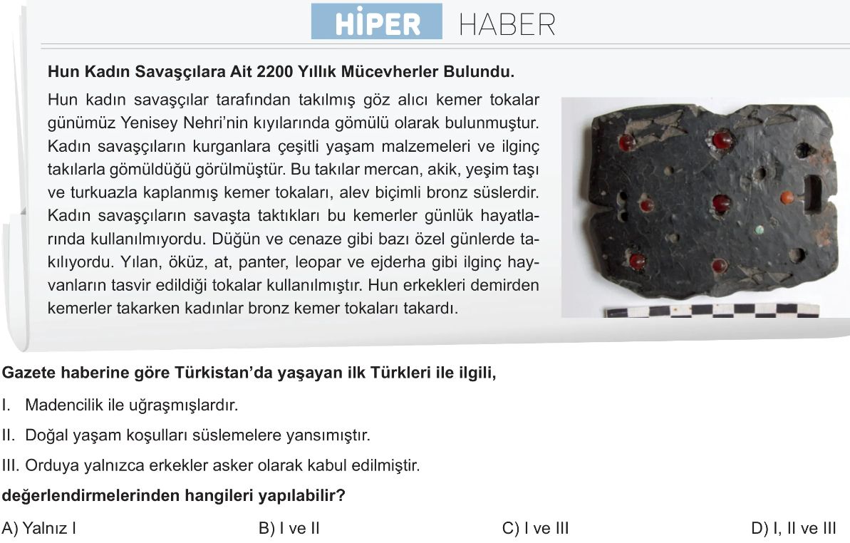 6. Sınıf Türkistan'da Kurulan İlk Türk Devletlerinin Medeniyetimize Katkıları Test 6