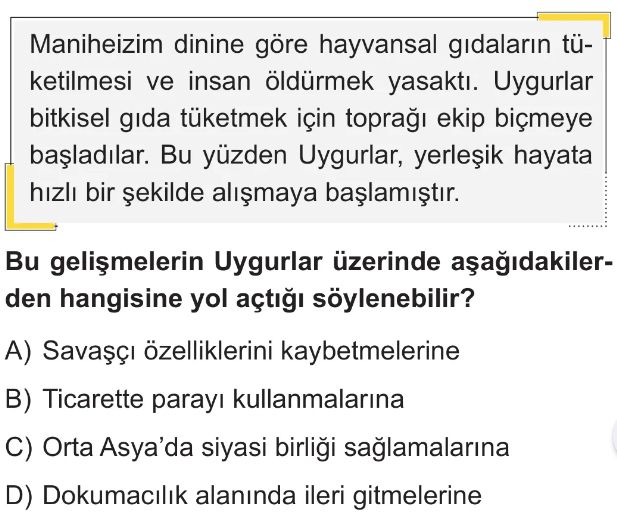 6. Sınıf Türkistan'da Kurulan İlk Türk Devletlerinin Medeniyetimize Katkıları Test 6