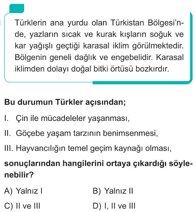 6. Sınıf Türkistan'da Kurulan İlk Türk Devletlerinin Medeniyetimize Katkıları Test 7