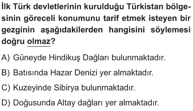 6. Sınıf Türkistan'da Kurulan İlk Türk Devletlerinin Medeniyetimize Katkıları Test 7