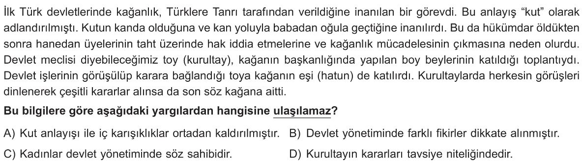 6. Sınıf Türkistan'da Kurulan İlk Türk Devletlerinin Medeniyetimize Katkıları Test 7